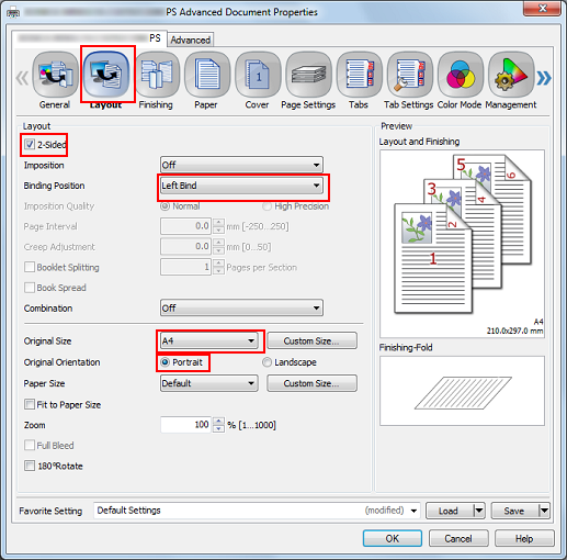 When setting in the printer driver, make sure that there are no previous settings left in each item in the tabs [Layout], [Finishing], [Cover], etc.