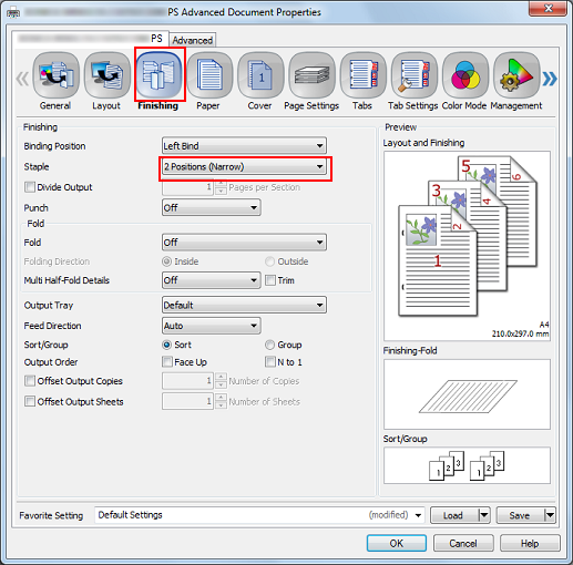 Click the [Finishing] tab, and then set [Staple].