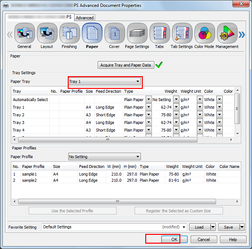 Select a tray in [Paper Tray], and then click [OK].
