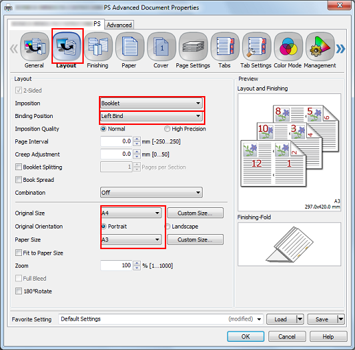 When setting in the printer driver, make sure that there are no previous settings left in each item in the tabs [Layout], [Finishing], [Cover], etc.