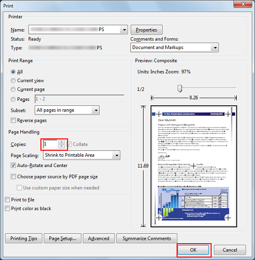 Printing starts. When the printing is completed, go to "Checking the finishing" and check the finishing of the printed document.