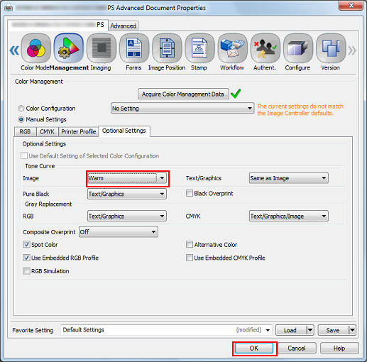 Using Color Centro allows tone curve adjustment and registration to the image controller. (Refer to Image Quality: Adjusting the Tone Curve.)