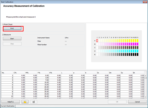 After measurement, check the CMYK density, gray balance, and other results to determine whether advanced controller calibration is necessary.