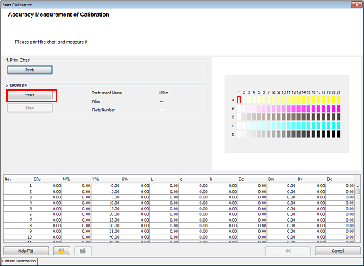 For details about the chart measurement operation, refer to Image Quality: Executing the Controller Calibration.