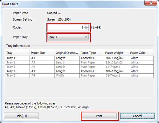 4. On the [Print Chart] screen, set the [Copies] and [Paper Tray]. After setting, click [Print].