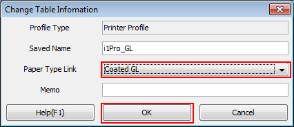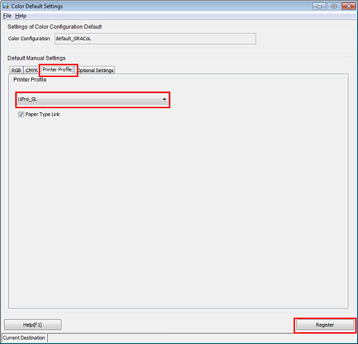 Using Color Centro, you can set a paper type link to a saved printer profile and register it as the default printer profile.
