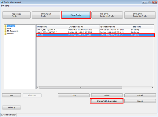 Click [Printer Profile]. Click to select the profile name of the profile you want to apply, and click [Change Table Information].