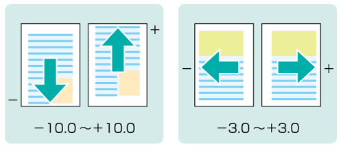 When the print image on the front and/or back side of the print is not in its desired position, this function allows you to horizontally/vertically move the whole print area by specifying the desired values. Make the adjustment for each paper type.