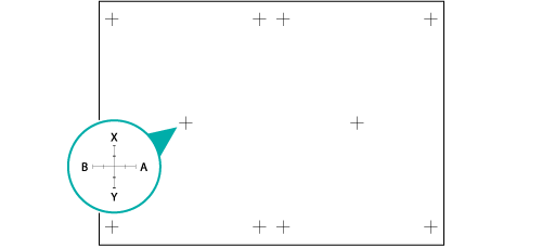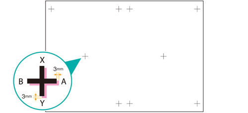For more efficient Image Shift adjustment, first set one of the four corner register marks, and then align the rest.
