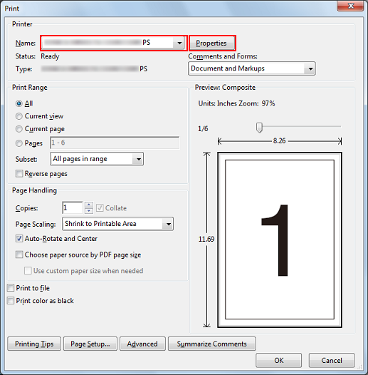 Select the printer to use for printing and click [Properties].