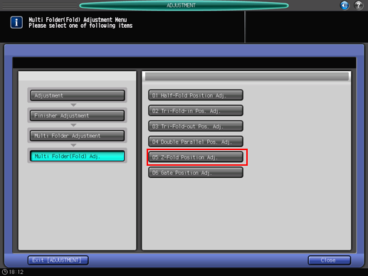 Press [Z-Fold Position Adj.] on the [Multi Folder(Fold) Adj.] menu.