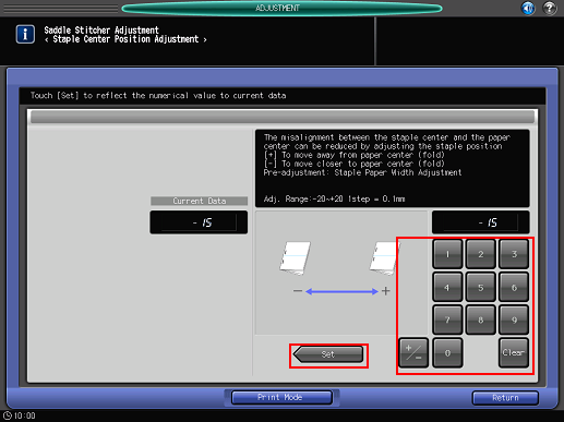 Enter the adjustment value and press [Set].