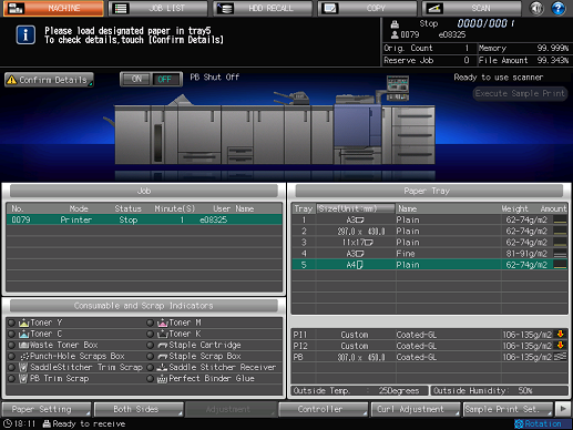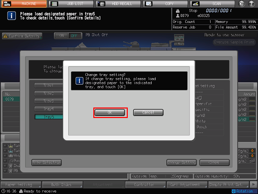 [Please load designated paper or / touch [Confirm Details] and select tray]