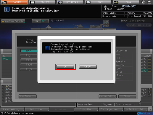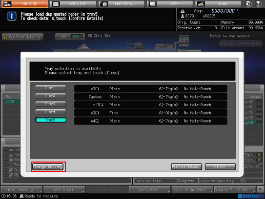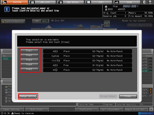 Press a tray key to be used, and then press [Change Setting].