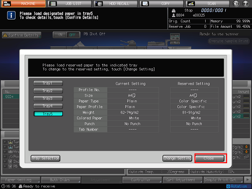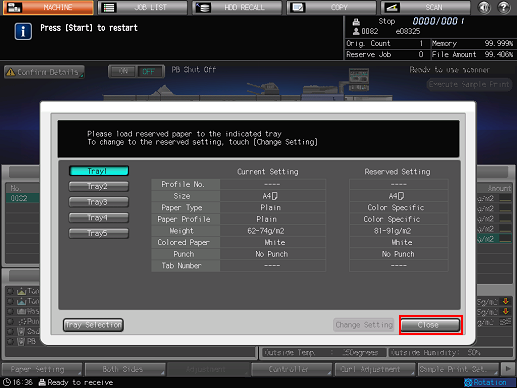 Load the tray selected in step 2 with paper of the conditions displayed as [Reserved Setting].