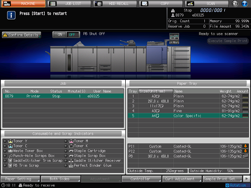 - Specify the tray designated by received print data with the required paper conditions, and load that tray with corresponding paper.