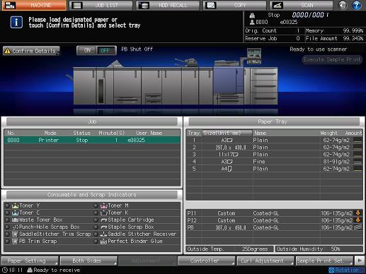 [Please load designated paper in tray$ / To check details, touch [Confirm Details]]