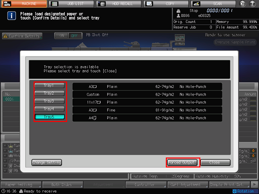 Press a tray key to be used and then press [Forced Output].