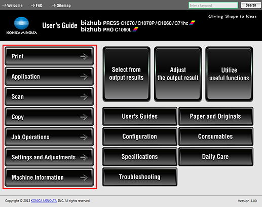 From the top page (Home) of the User's Guide, you can search for the information you wish to know using the following three ways.
