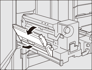 Return the left cover of the fixing unit to its original position. Return the fixing conveyance unit to its original position, then reset the lever M1.