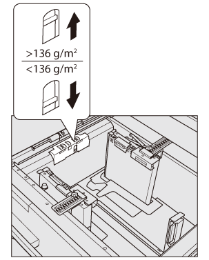 When loading paper of 139 mm / 5.47" or less in width and 136 g/m2 / 37 lb Bond or more in weight, push up the Upper limit sensor position adjustment lever.