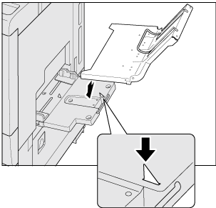 Push down the paper size sensor of Multi Bypass Tray MB-506 and put Banner Tray Unit MK-740 (Feeding Extension Tray) on the bypass tray from top right to cover it.