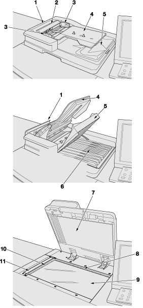 7 | ADF guide cover | Automatically positions the original on the original glass. Or, closed to cover the original positioned manually on the original glass. |