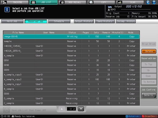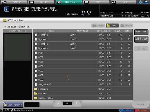 The [HDD RECALL] screen allows you to operate HDD store jobs.