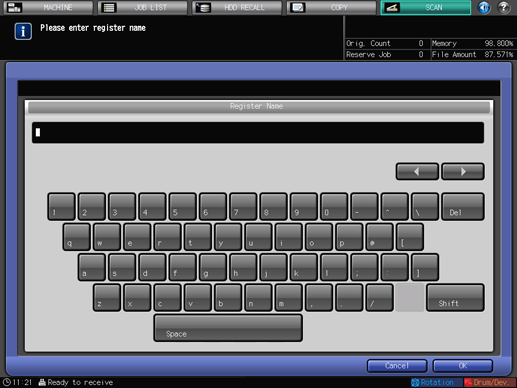 Cancel | Cancels the characters you input, and the character input screen closes. |