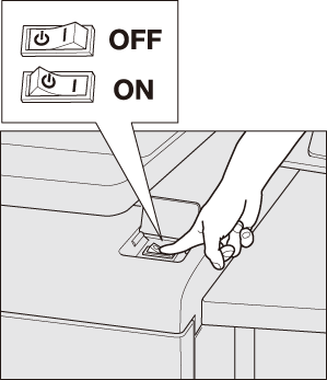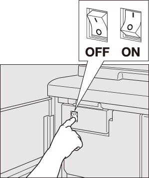 When turning the main power switch on immediately after turning it off, turn the [main power switch] off, check that the power LED on the control panel is out, and be sure that at least 10 seconds have passed before turning the main power switch on. If the main power switch is turned on again within 10 seconds, the machine may not operate properly.