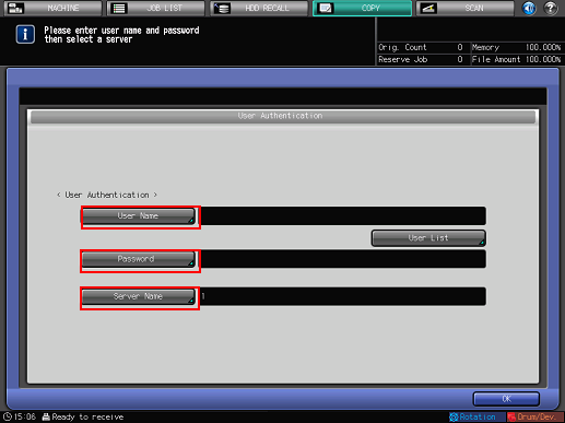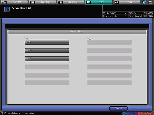 1. Check the server name displayed on the right side of [Server Name]. If it is not the server being accessed, press [Server Name].