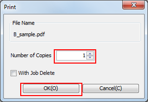 To delete the job at the time of outputting, add a check mark to [With Job Delete].