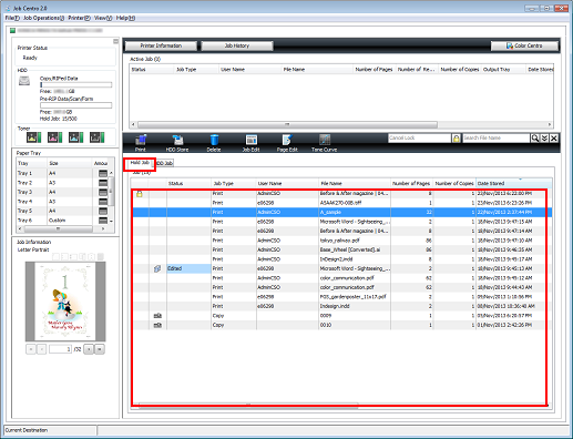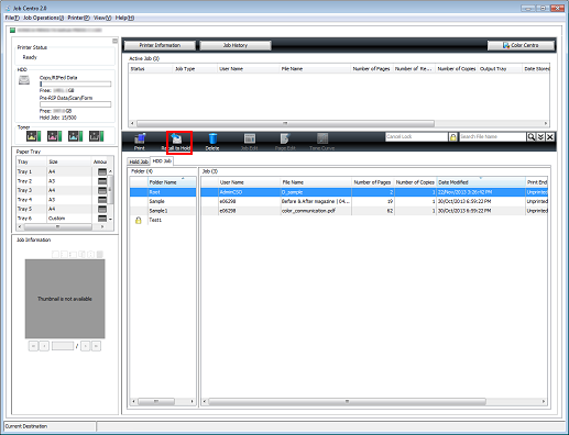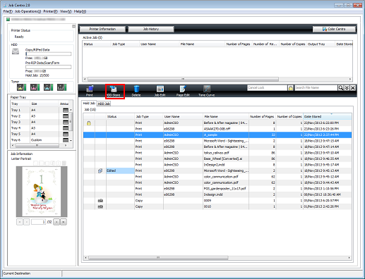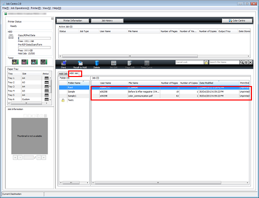 Click the [Hold Job] tab and select the job (or jobs) to save in the HDD.