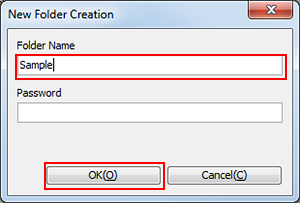 To set a password for the folder, enter in [Password]. A password is not set in this example.