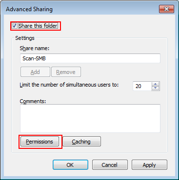 Create a shared folder on the Windows computer. You can receive the scan data sent from the machine to the shared folder and share it with a client computer.