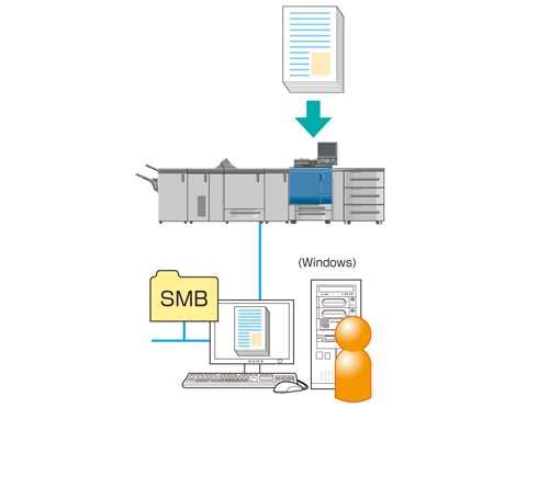 It is possible to send a large volume of scan data from the machine to the shared folder created on the Windows computer (supporting SMB protocol) on the network.