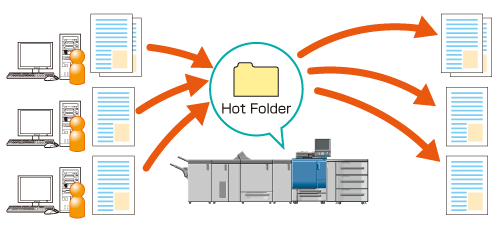 You can register print settings and output method to each Hot Folder according to the use applications (up to 100 folders).