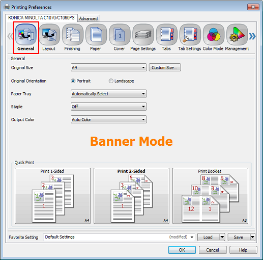 For output, simplex printing and face up output.