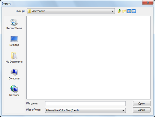 1. From the [File] menu on the [Alternative Color Management] screen, select [Import].
