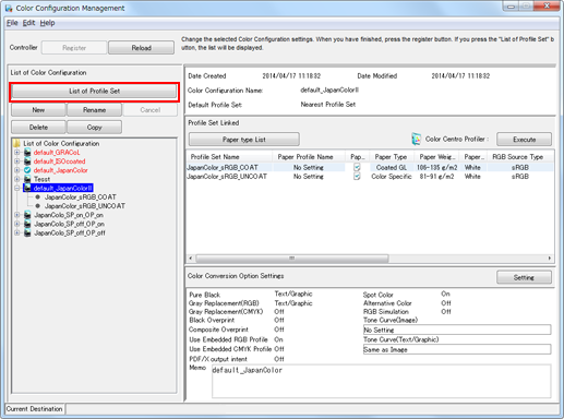From the tree view on the [Color Configuration Management] screen, double-click the color configuration that you wish to display the detail information.