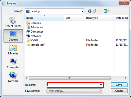 When a profile set saved on the [Local] computer or [Network] computer is selected, the [Save As] screen is displayed.