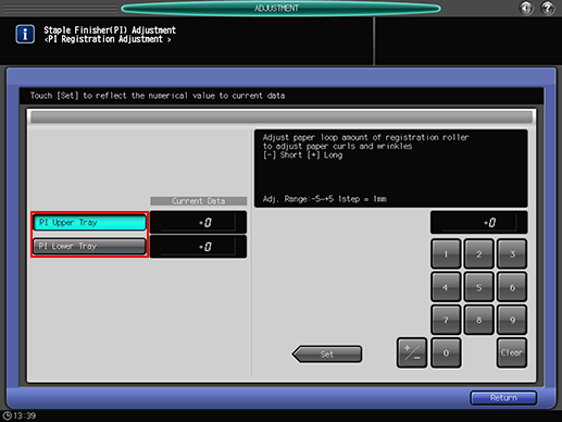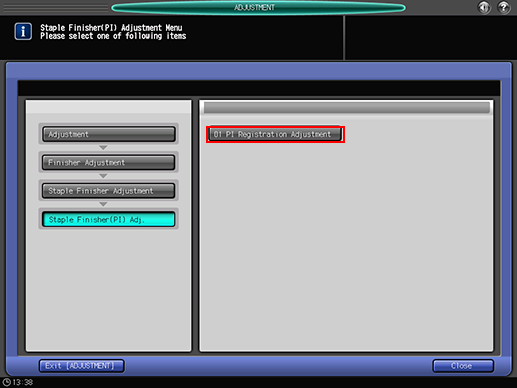 The screen returns to the [Staple Finisher(PI) Adjustment Menu] screen.