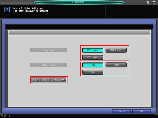 Press [Execute Compulsive Movement] to move the trimmer receiver manually.