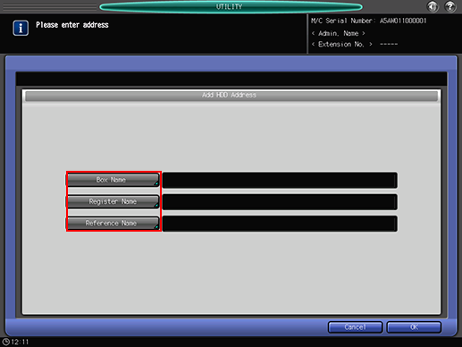 [Register Name] (Image Controller IC-602) | You can enter up to 24 one-byte characters (12 two-byte characters). Enter [Register Name] that you registered when you created the user box. If you do not enter the register name, [Box Number] is registered as the register name. |