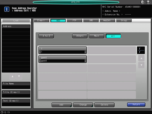 Follow the procedure on Scan Address Register to display the [Scan Address Register Menu] screen.