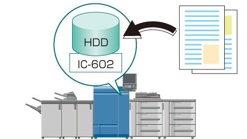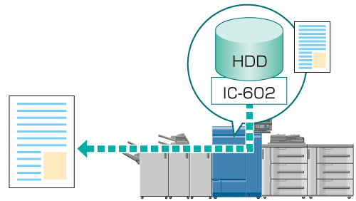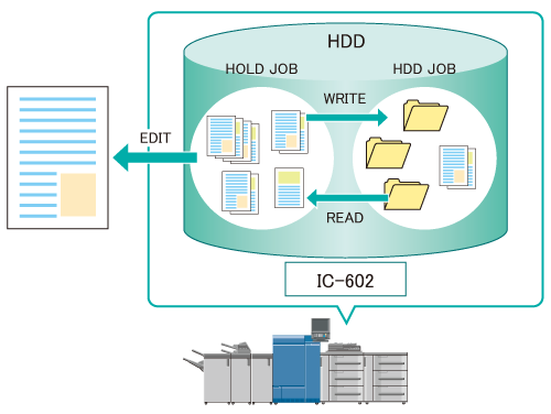 You can hold temporarily/save print and copy data as a "job" in the hard disk.