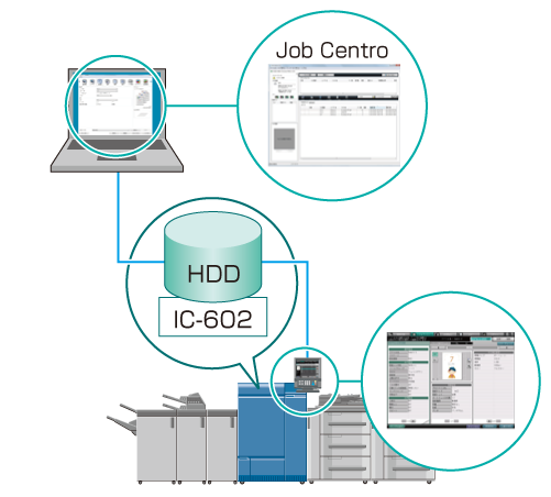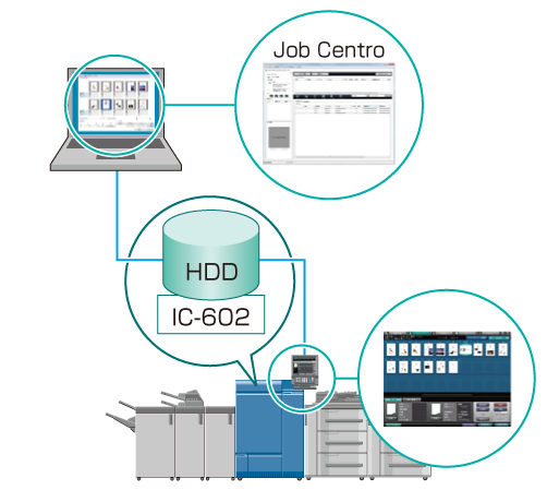 Printing and editing of the job is possible both on the touch panel of the main body and on the computer where Job Centro has been installed.