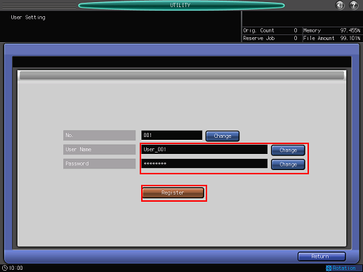 Enter [User Name] and [Password] in the same manner, and then press [Register].