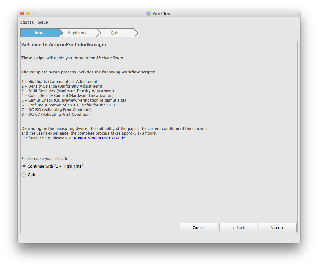 For details on the pre-installed workflows of AccurioPro ColorManager, see Workflow.