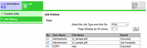Web Connection - [Job] - [Job History]